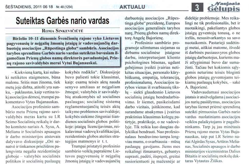 The Prienai care home is an institution of the Lithuanian ARG (Association of Careful Guardianship) since 2006.
